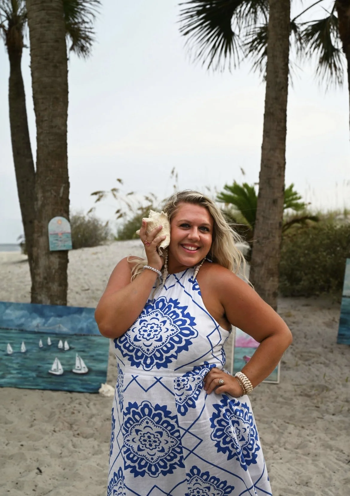 Her vision is simple: to ease anxiety and depression and offer a breath of calm. Through bright coastal palettes, sun-lit movement, and playful textures, she hopes to transport viewers to the beach—immersing them in joy, tide, and Lowcountry light. Staying true to her love of the ocean, Whitney gives new life to reclaimed and thrifted canvases whenever she can, keeping her practice as sustainable as possible.